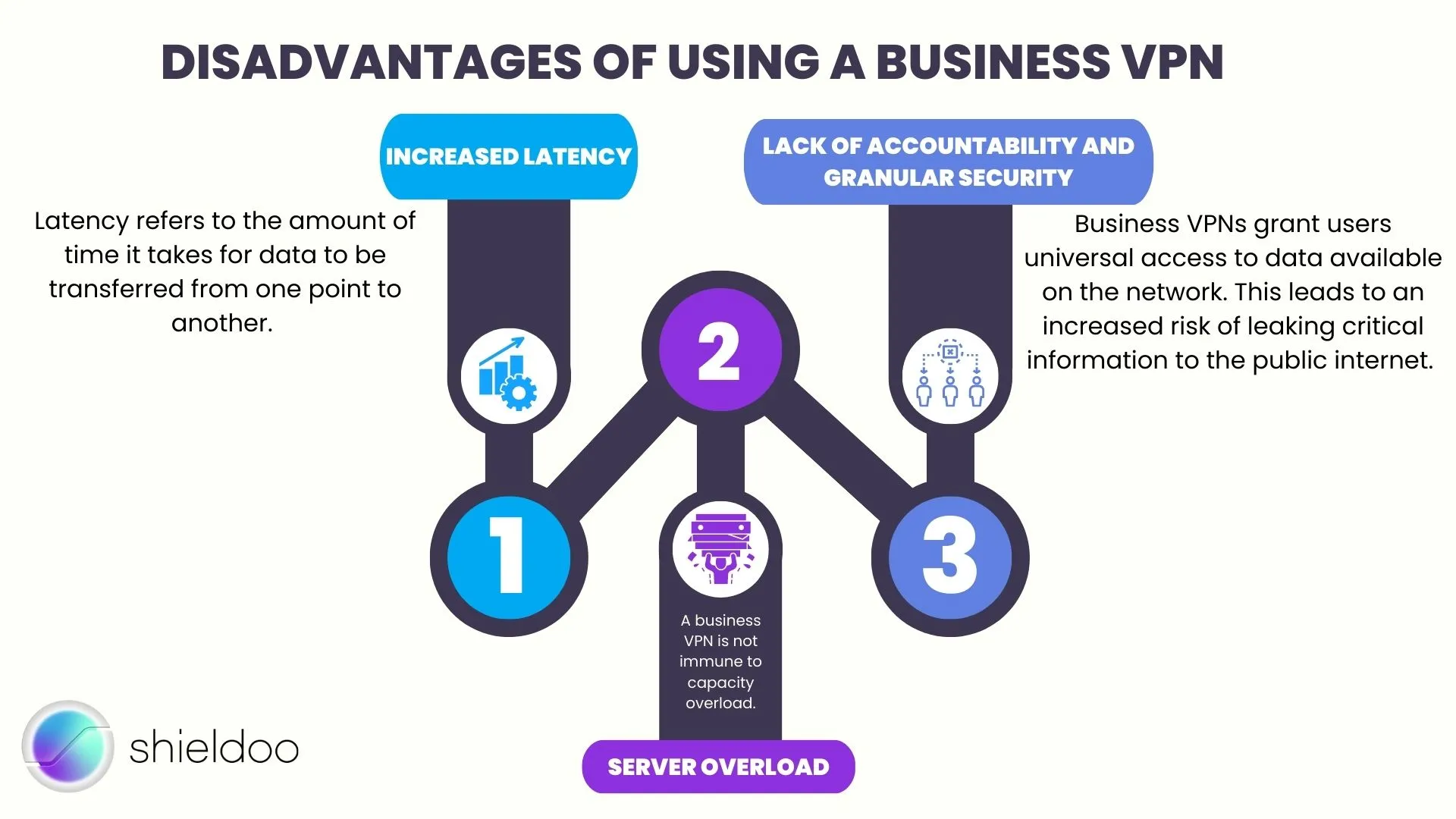 A business VPN often slows down connection speeds, hampering the productivity of users. A medium-sized enterprise may also require more than one VPN server to accommodate multiple requests at a time. In addition, business VPNs do not guarantee the security of critical data stored on the network. All users have access to every resource available, raising the risk of internal data breaches and cyberattacks.